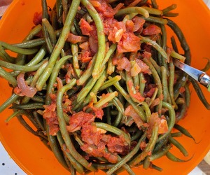 Add the beans and stir to coat them in the tomato mixture. Cover with a lid and simmer on a medium to low heat until the tomatoes reduce and the beans are tender (20-25mins). Serve hot or cold.